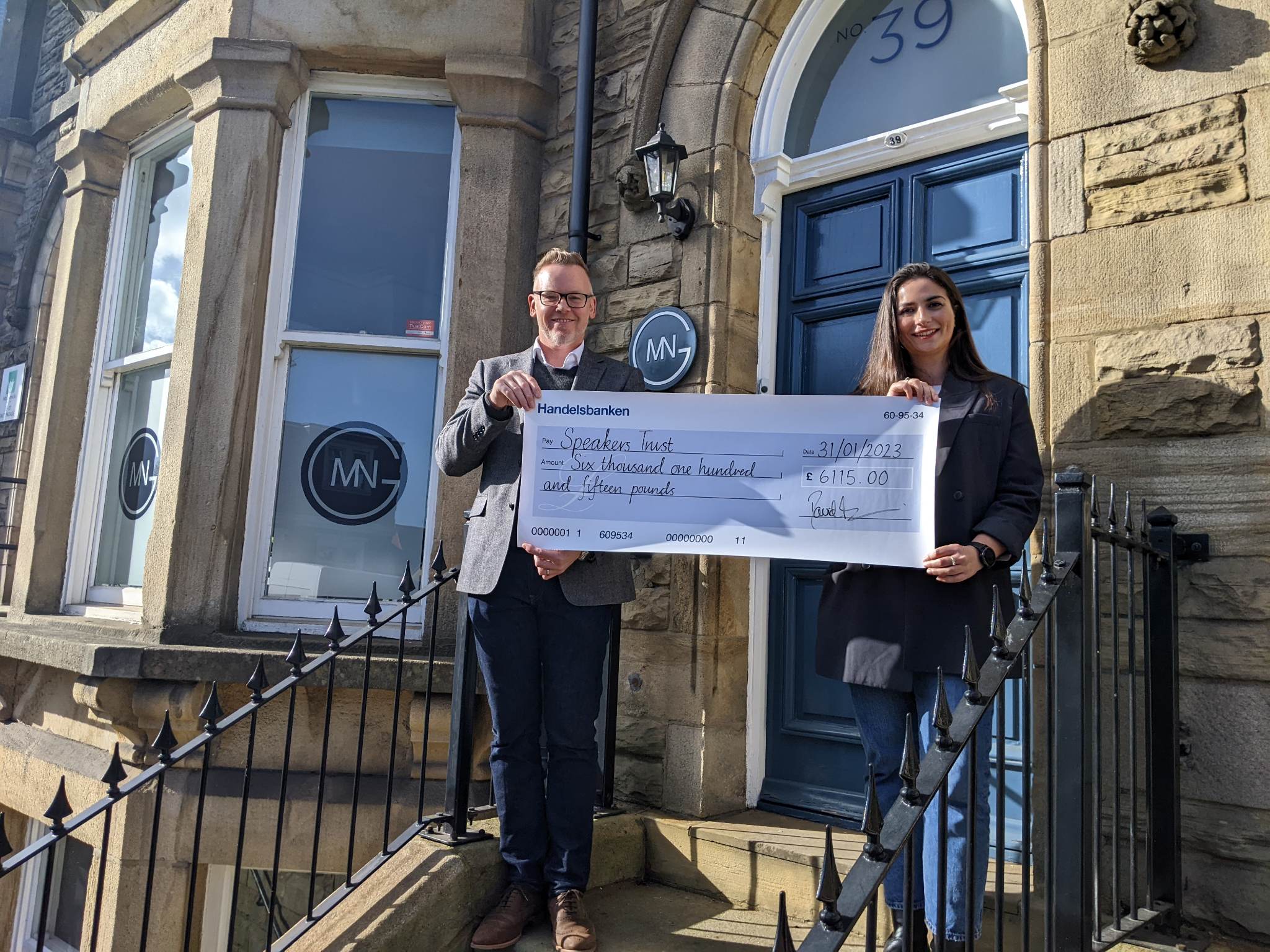 - Presenting the cheque to Speakers Trust